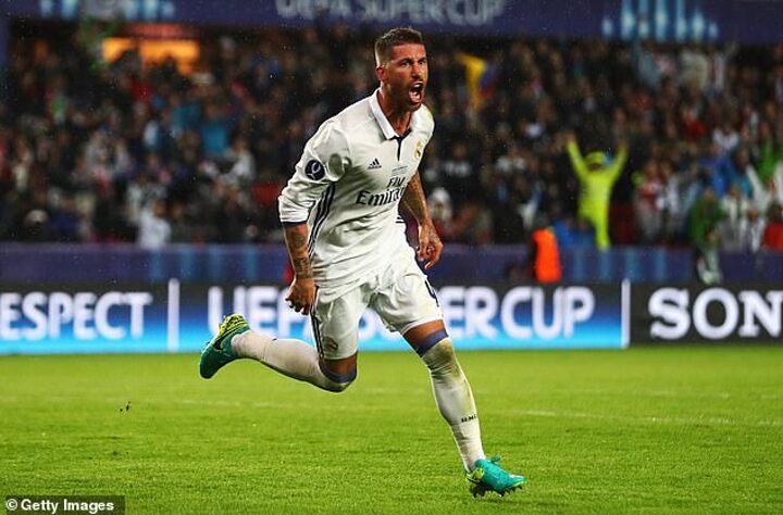 Needles to say, Real went on to win 3-2 - thanks to Dani Carvajal's goal in extra-time - and Ramos lifted the Super Cup for the first time as captain, another trophy to add to the cabinet.