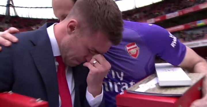 A tearful Aaron Ramsey waves goodbye to the Emirates Stadium after 11 years at the club.