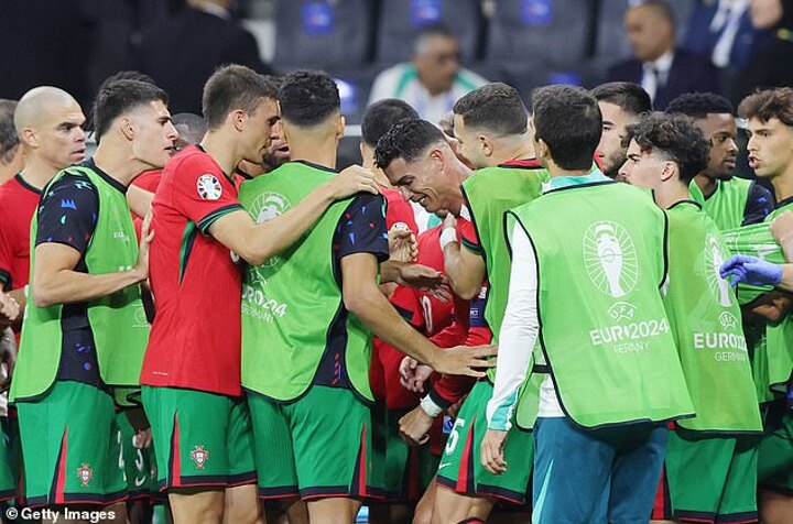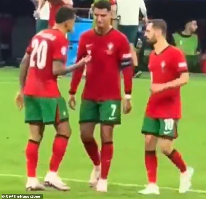 Diogo Jota, Joao Cancelo and Bernardo Silva also joined in trying to calm Ronaldo down just seconds before play resumed in the Euro 2024 knockout clash.