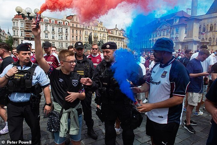 Several West Ham fans suffered cuts and bruises as the missiles flew. Police in the Czech capital said three West Ham fans and one police officer were injured in the incident while 16 people were detained.