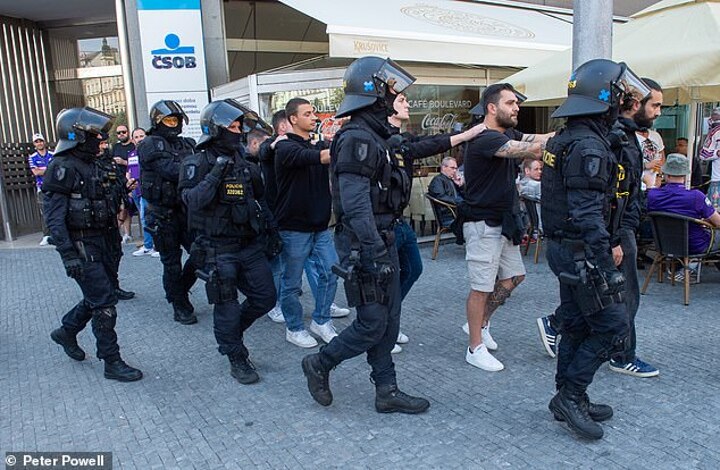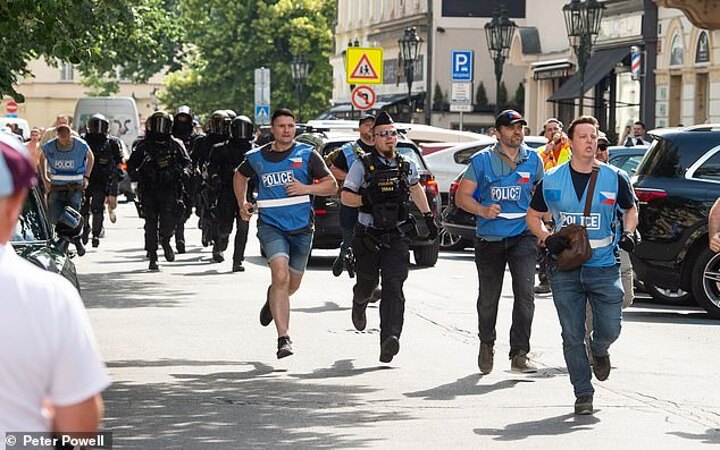'Italy fans attacked West Ham fans in a bar in Rytířská Street, injuring three. One policeman was also attacked,' the statement said.