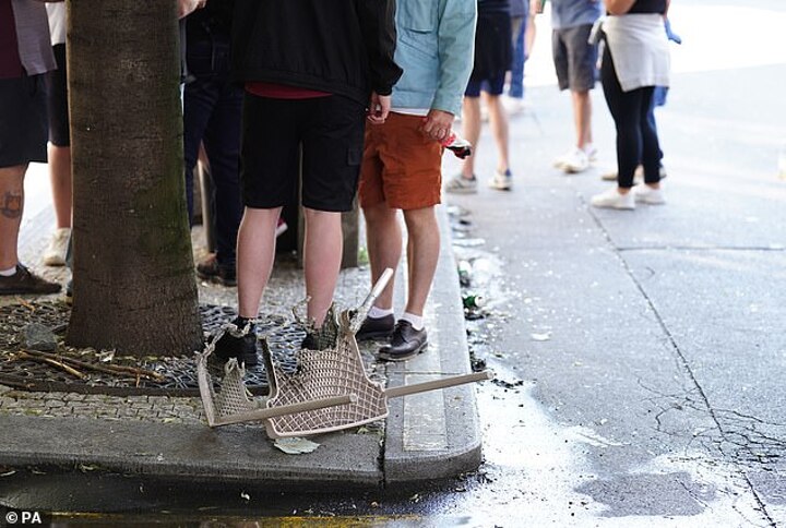 As the police moved in to quell the violence, two stun grenades were launched into the Tekila Tekila bar in the city centre, causing loud bangs. Broken glass and a burnt-out chair littered the ground outside the bar after the attack.