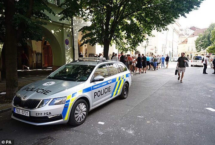 Steve Wick, 60, from Hertfordshire, said he had travelled for hours to make it to the Czech capital. 'We drove 13 hours,' he said. 'We got the shuttle over from Folkestone and then drove through. So 13 hours door to door.'