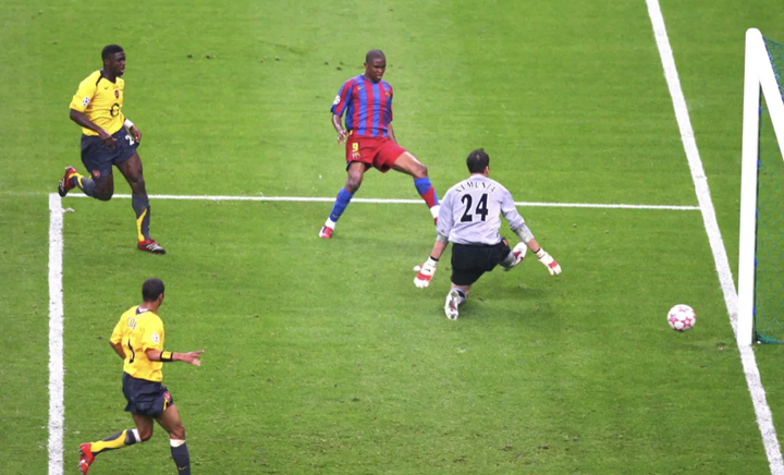 At the time, Barcelona’s equaliser caused major uproar. Former Celtic man Henrik Larsson had played a beautiful through ball into the path of Eto’o, who finished brilliantly past Manuel Almunia.