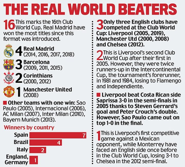 Of course, there are issues. It is increasingly difficult to topple Europe's top clubs. Liverpool should certainly have too much for Monterrey, champions of the CONCACAF region, on Wednesday.
