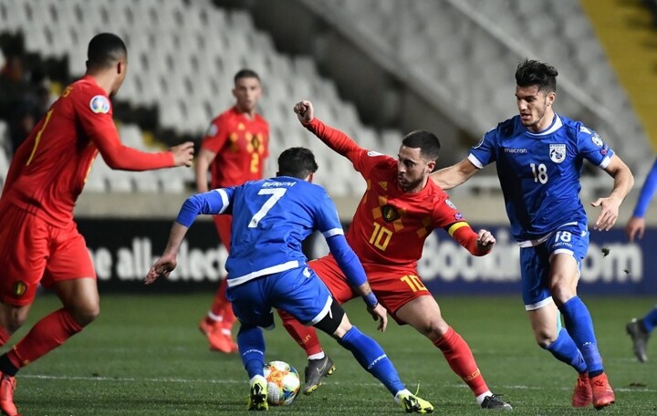 Belgium eased to a 2-0 Euro 2020 qualifying win in Cyprus, as Eden Hazard scored on his 100th appearance.