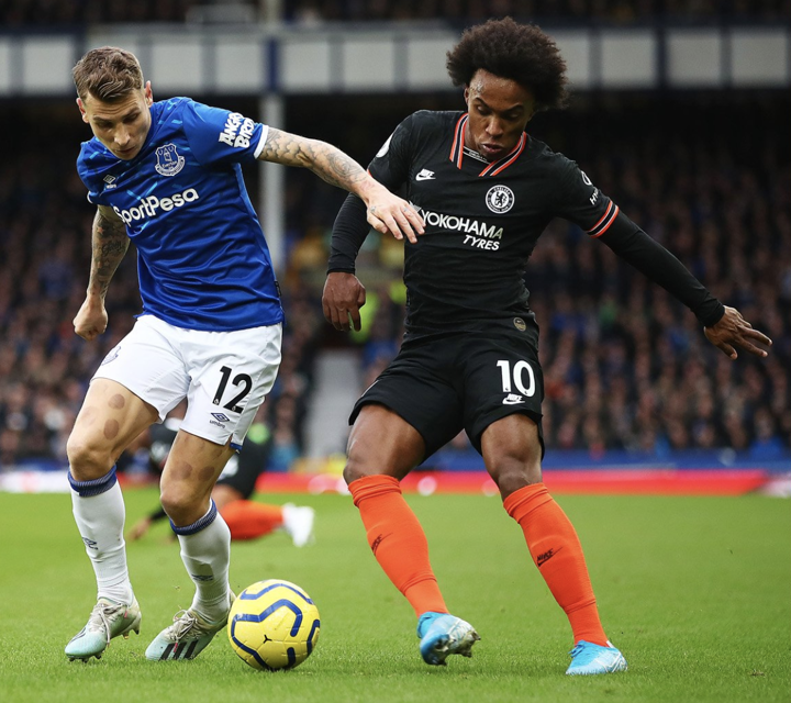 GOALLLLLLLLLLLLLLLLLLLLL!!!!!!!! RICHARLISON HEADS EVERTON IN FRONT!!! 1-0!!!! The Toffees take the lead as Richarlison converts from close range. Chelsea are cut open at the back down the right flank and Sidibe takes advantage by lifting a cross into the middle. Richarlison attacks the delivery to get there ahead of Christensen, nodding his effort away from Kepa into the back of the net. The perfect start for Ferguson in the dugout.