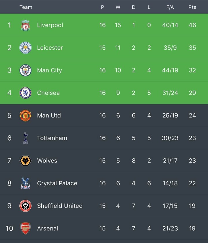 League standings